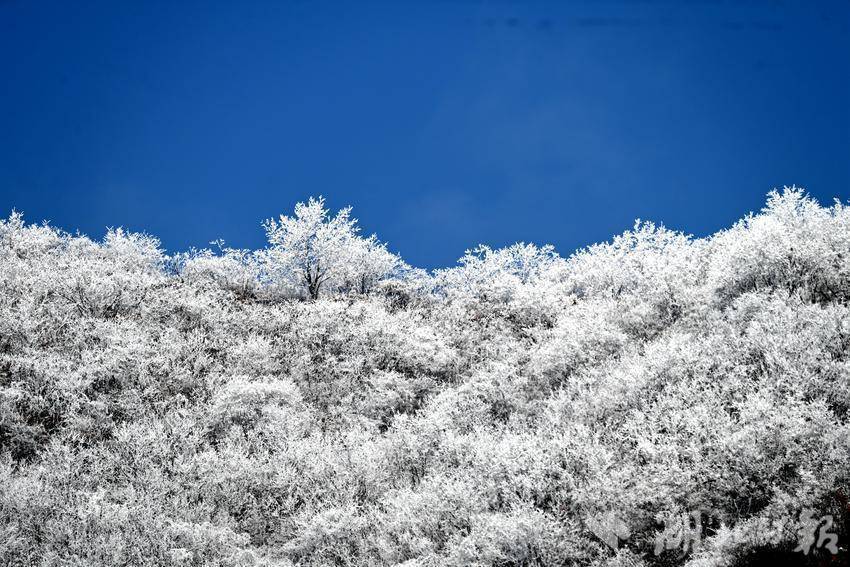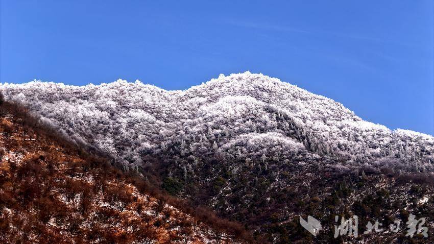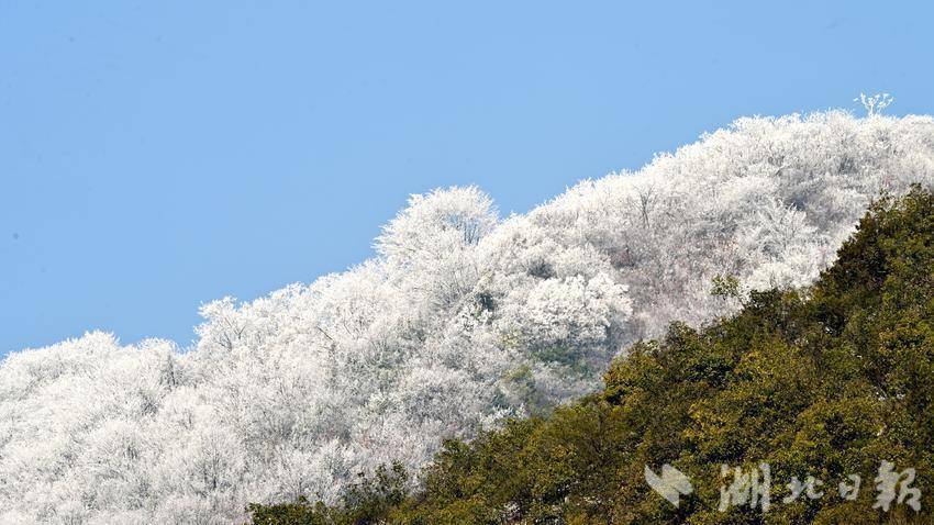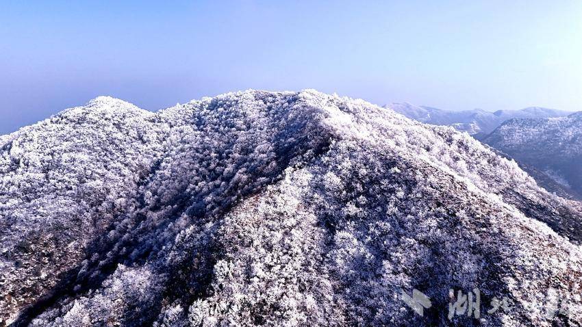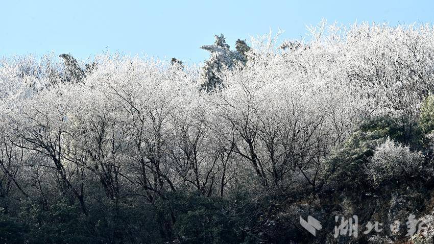 湖北日报客户端讯(通信员王涛)近日,十堰市郧阳区受寒潮紧迫,普降中到大雪。22日雪后初霁,在部分峻岭地区出现了大面积雾凇,好意思不堪收。