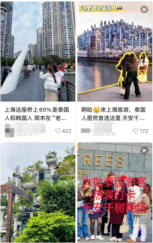 岁末岁首 不少上海东说念主发现 身边多了不少番邦旅客 他们出目下外滩、南京路、淮海中路 等热点区域 以及民国期间的一处原址 “平均5步内, 身边就有一个韩国东说念主流程。” 这句话也被合计是并不夸张的说法 苏州河滨的天安·千树 自2021年底开业后 打卡的网友一度络绎连接 最近 这家开业3年多的市场 片刻又火了 到处王人是番邦模样 借着新年假期 以泰国旅客为主的东南亚旅客 不息涌入上海 将泡泡玛特旗舰店、天安千树 酿成了上海的“新网红” 印度尼西亚、柬埔寨、澳大利亚 旅客的身影 在这里也不鲜见