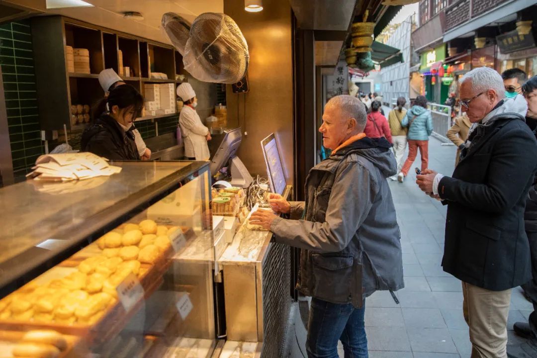 在不边远的纽约贝果博物馆,店内坐满了番邦旅客。与附近几家相对冷清的咖啡甜品店比拟,这家店的菜单和居品标签王人附有英文,似乎还是掌捏了“Shanghai Travel”(上海旅游)的流量密码,眩惑了寰球各地的年青东说念主前来拜访。这些年青的番邦旅客们悉心转念面包和饮品的角度,整理好衣领和帽子,在最得当的清朗下拍照迷恋,尽情享受着上海这个晴朗而赋闲的冬日午后。