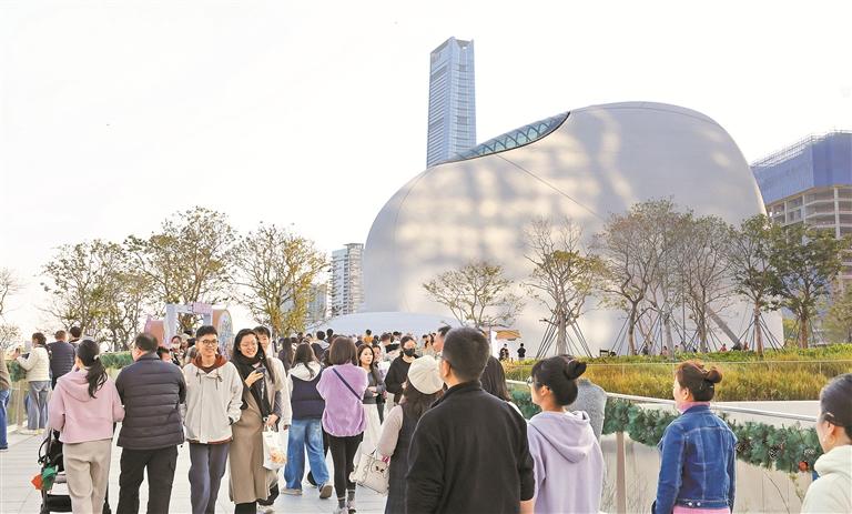 元旦时候,深圳湾文化广场勾引了迢遥市民搭客前来游览。 深圳特区报记者 周红声 摄