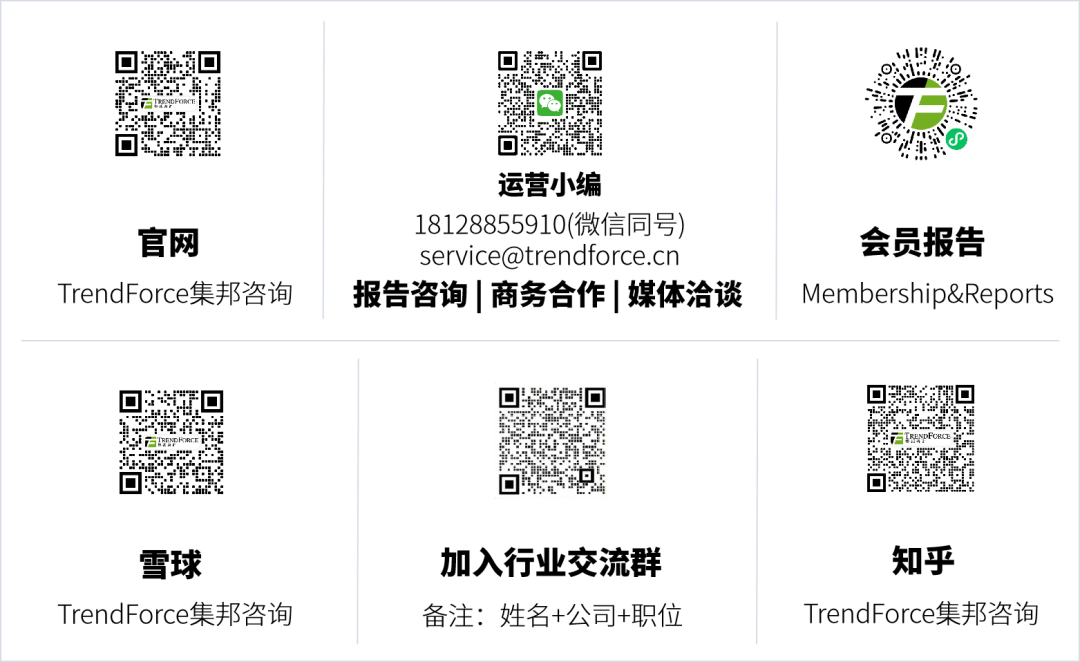 TrendForce集邦商榷是一家横跨存储、集成电路与半导体、晶圆代工、光电线路、LED、新能源、智能末端、5G与通信网罗、汽车电子和东谈主工智能等规模的大家高技术产业经营机构。公司在行业经营、政府产业发展宗旨、花样评估与可行性分析、企业商榷与计策宗旨、品牌营销等方面累积了多年的丰富警告,是政企客户在高技术规模进行产业分析、宗旨评估、参谋人商榷、品牌宣传的优质合作伙伴。