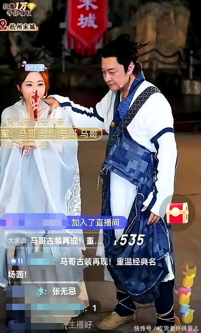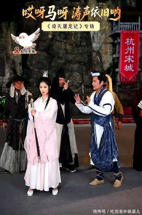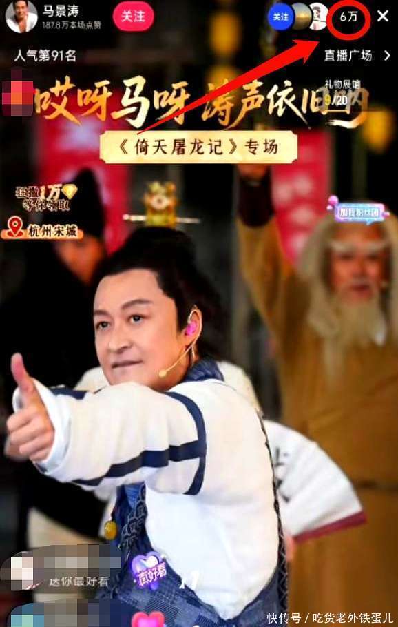 6月21日晚上7点,63岁的马景涛以并立张无忌的装饰现身杭州宋城,进行直播算作。
