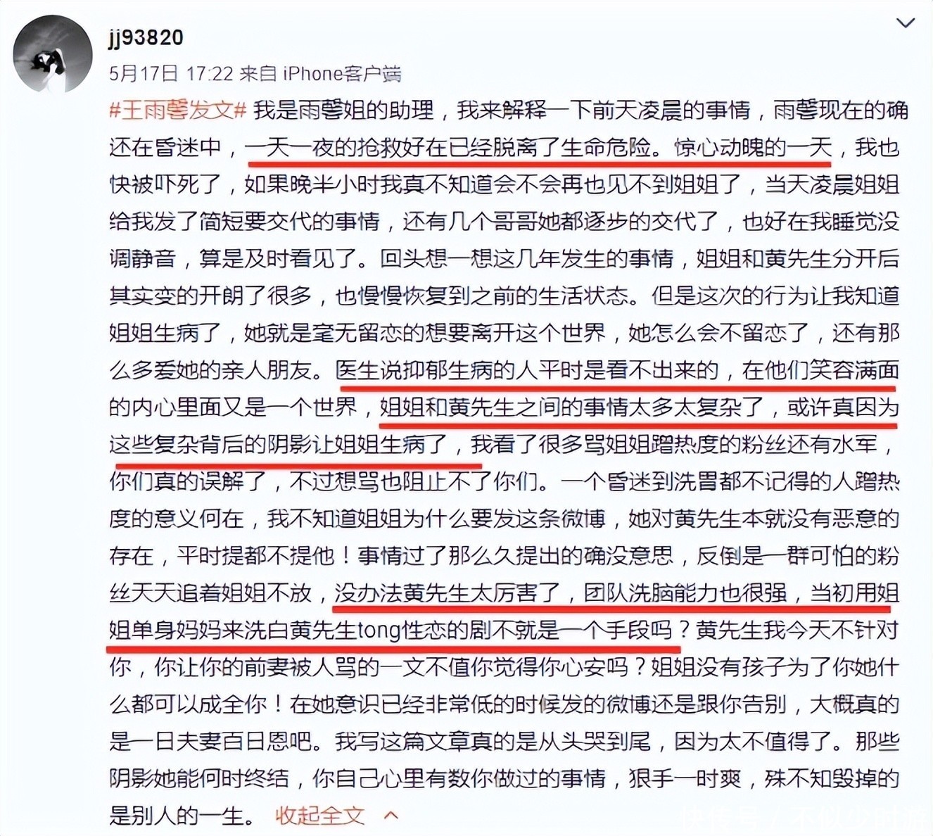 原来以为风云就此平息,没猜测这仅仅运转。2020年,王雨馨经验了轻生被救的事件后,躬行站出来,在酬酢平台发布长文,再次控诉黄景瑜存在家暴与出轨作为。