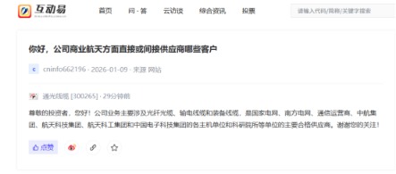 上证报中国证券网讯通光芒缆12日在互动平台复兴投资者发问时示意体育游戏app平台,公司业务主要触及光纤光缆、输电线缆和装备线缆,是国度电网、南边电网、通讯运营商、中航集团、航天科技集团、航天科工集团和中国电子科技集团的各主机单元和科研院所等单元的主要及格供应商。