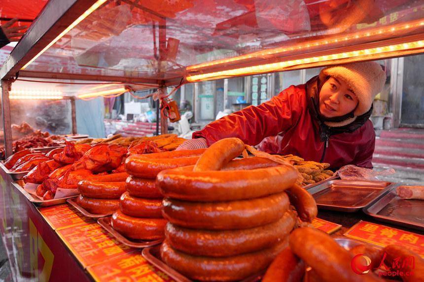商户在大集上售卖熏制的红肠。东谈主民网记者 李洋摄